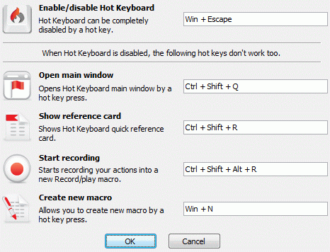 Hot Keyboard supports several hot keys you can use to control the major functions