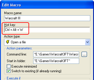 - In the "Hot key" field of the "Edit Macro" dialog box click
