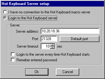 This dialog is designed to configure network settings to connect to the Hot Keyboard server.