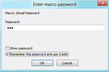 After you have protected a macro, you need to enter its password anytime you access it. If this seems to you inconvenient, you can make Hot Keyboard remember the password. To do this, check the Remember the password box while typing the password when you are asked for it and press the OK button.