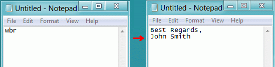 Important Note: after you type a text shortcut to execute a macro, Hot Keyboard sends a number of backspace characters to the application where you have typed the shortcut. So, you can use text shortcuts to perfrom inline replacing by execution of Paste Text macros: