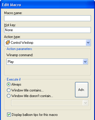 If you check the Display balloon tips for this macro box, Hot Keyboard will display balloon tips with additional information (e.g. Winamp song artist and title) at its icon in the system tray when you execute the macro.