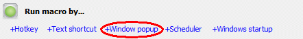 Important Note: Window Popup activates macro each time the window goes to front. Even if switch between windows.